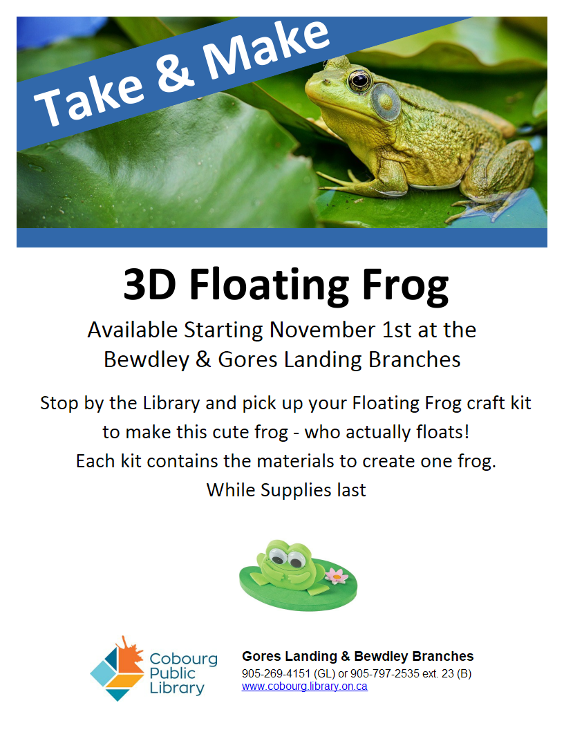 3D Floating Frog Take and Make Kit - Bewdley and Gores Landing Branches
