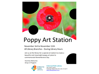 Join us at the library for a special art station to create a beautiful and meaningful poppy art piece to  commemorate Remembrance Day.