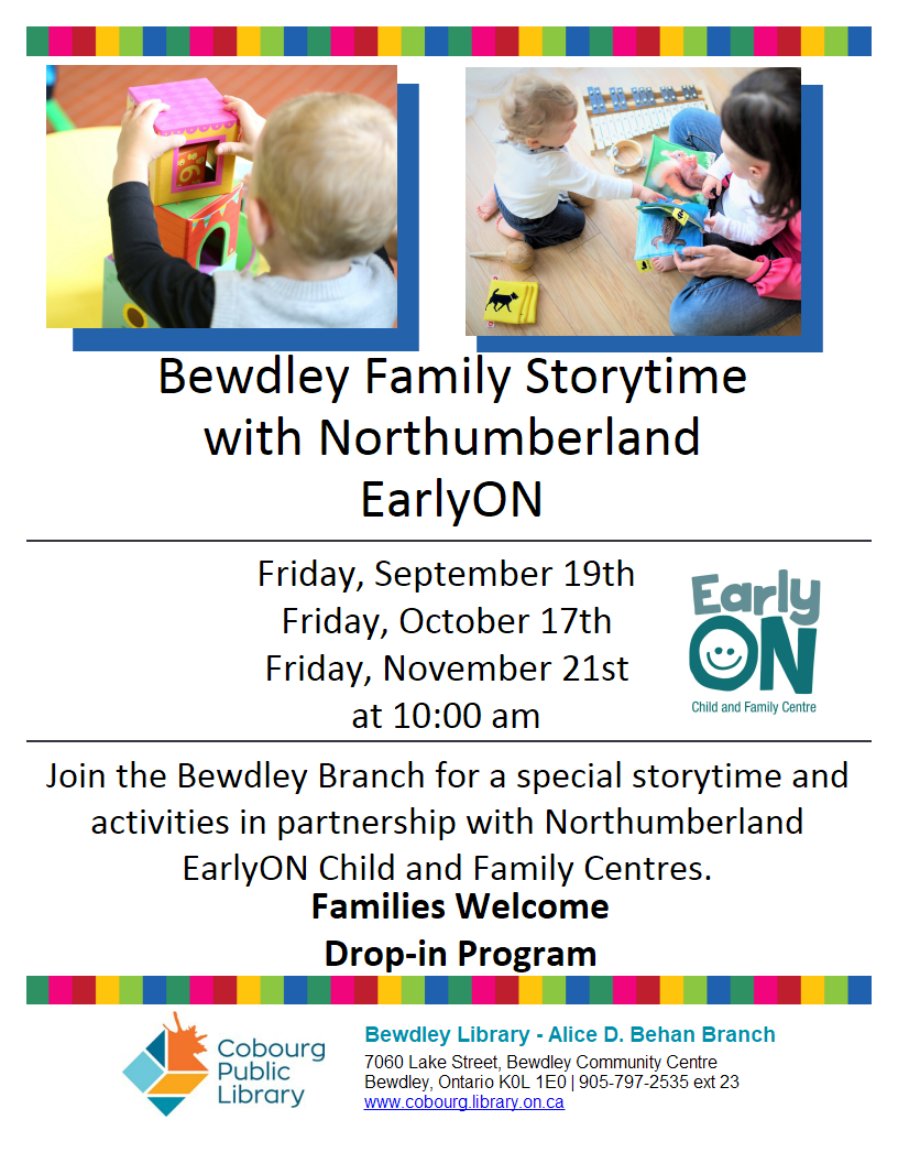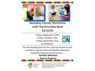 Join us at the Bewdley Branch for a special storytime and activities in partnership with Northumberland EarlyON Child and...