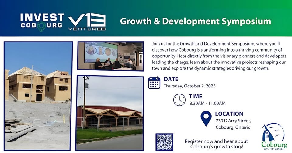 On Thursday, October 2nd, join us at Venture13 for Cobourg's Growth and Development Symposium, where you'll discover how Cobourg is transforming into a thriving community of opportunity.