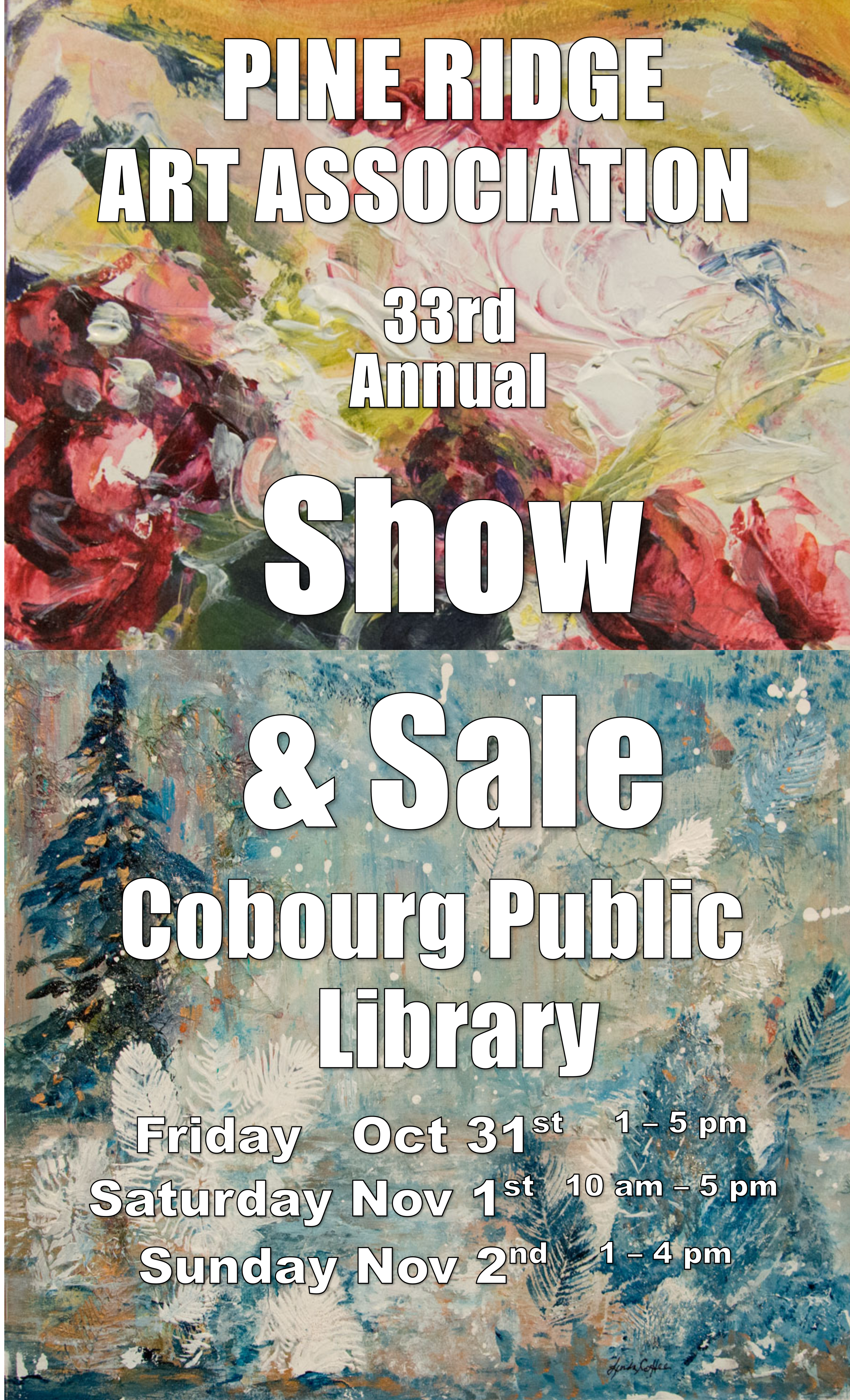 The Pine Ridge Art Association is holding its 33rd Annual Art Show at the Cobourg Public Library Friday Oct. 31st. 1-5pm; Saturday Nov. 1st. 10am - 5pm; and Sunday Nov. 2nd. 1-4pm. There is no admission fee and everyone is welcome. We look forward...