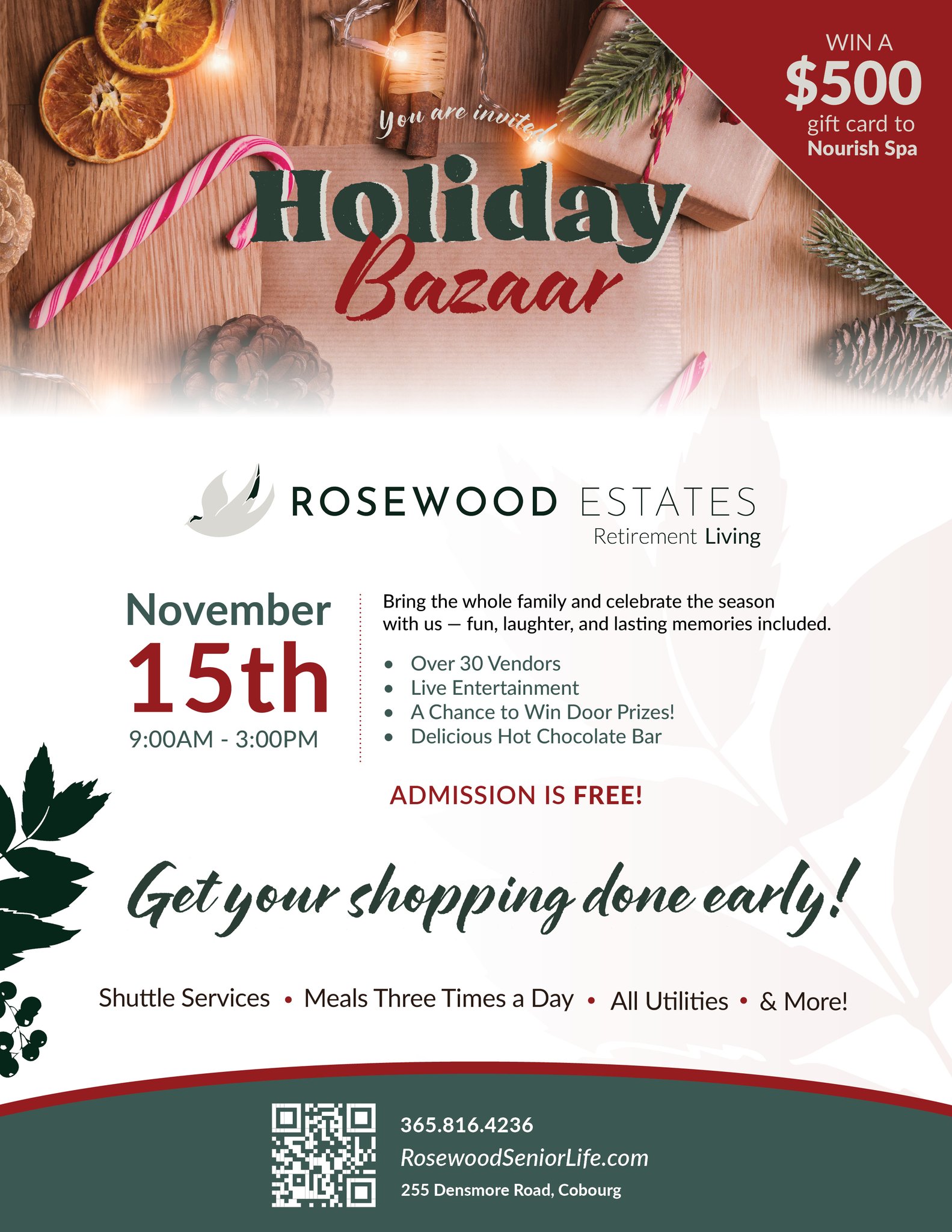 Get your holiday shopping done early and join us for a day full of festive fun on Saturday, November 15th from 9:00 AM – 3:00 PM at 255 Densmore Road, Cobourg!