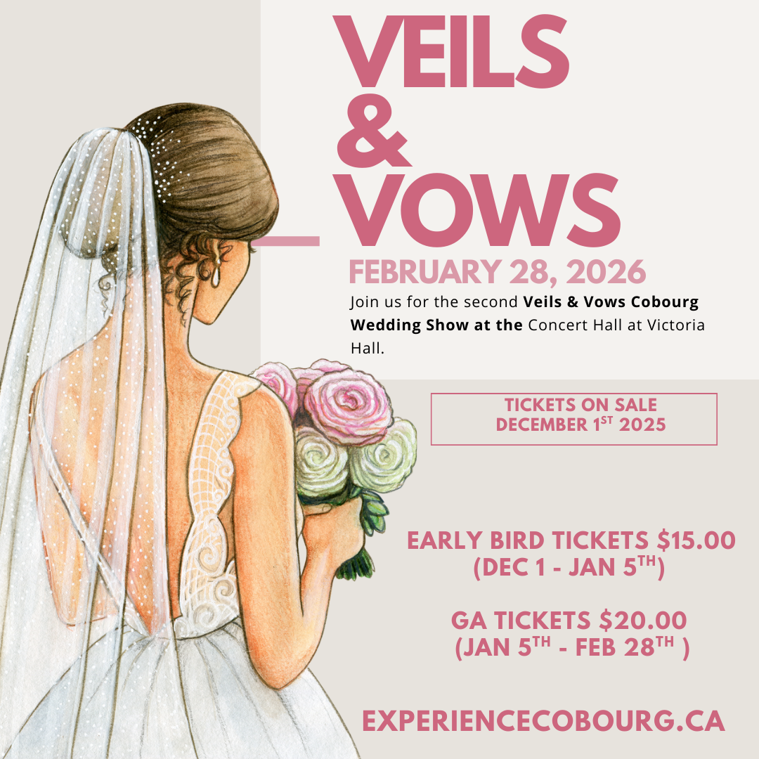 The Veils & Vows Wedding Show is back for its second year at the stunning Concert Hall at Victoria Hall in Cobourg! Join us on Saturday, February 28, 2026, from 11:00 AM – 2:00 PMfor an unforgettable day...